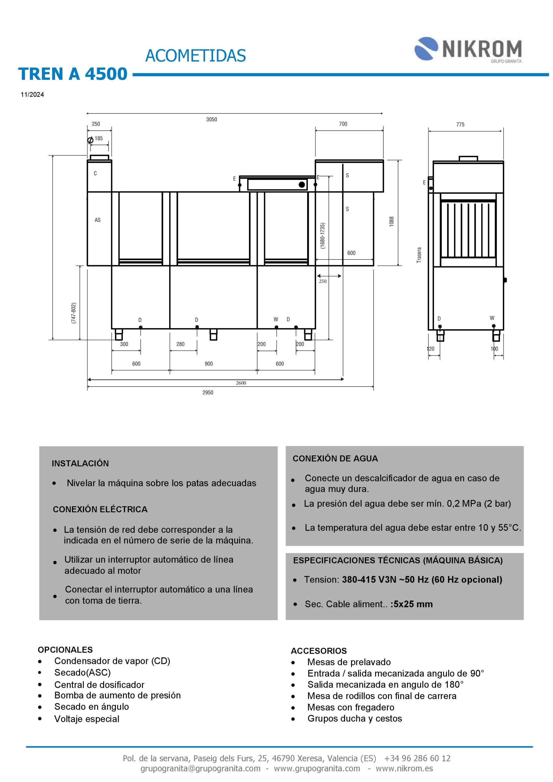 Potencia total: 34 Kw Voltaje: 400V 3F+N / 50Hz
