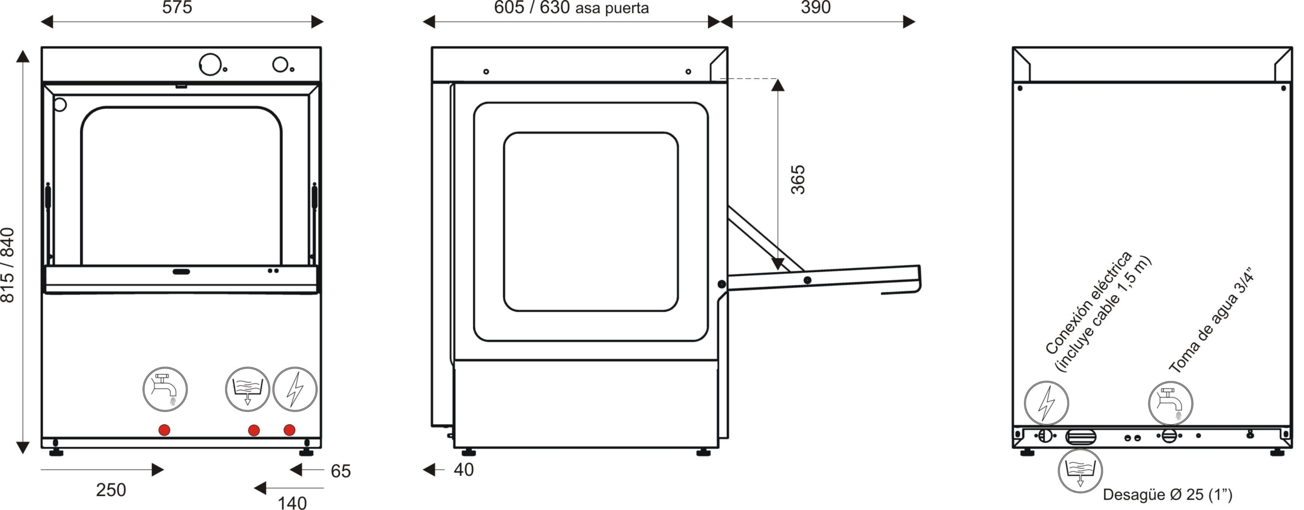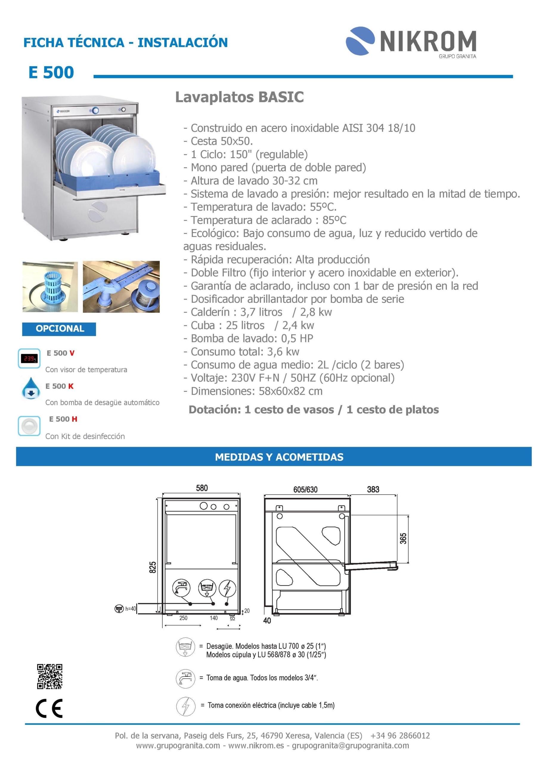 Sistema de lavado a presión, mejor resultado en la mitad de tiempo. Capacidad de lavado 380 platos/hora
